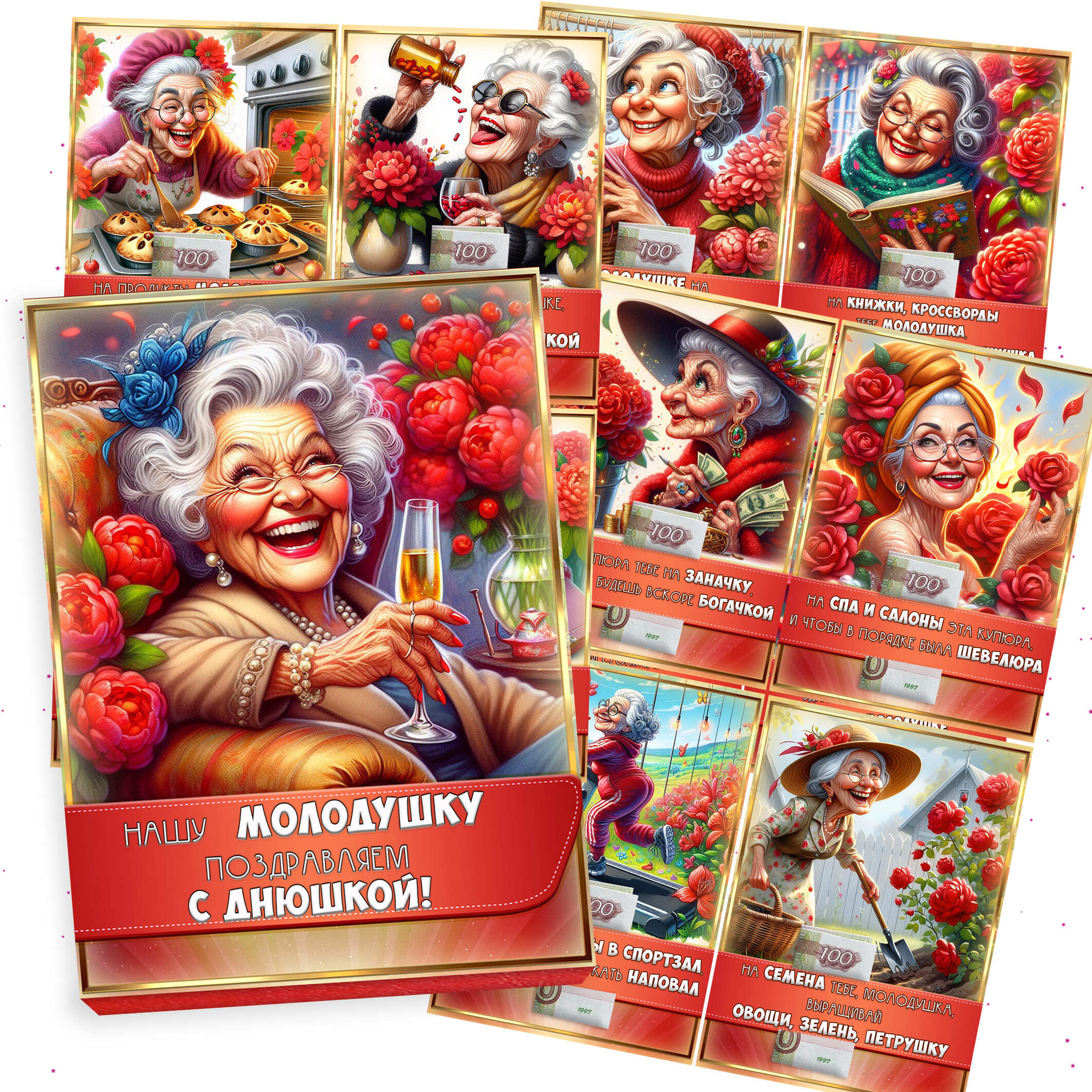 Подарочная коробка для денег С днем рождения, молодушка, 12 карточек