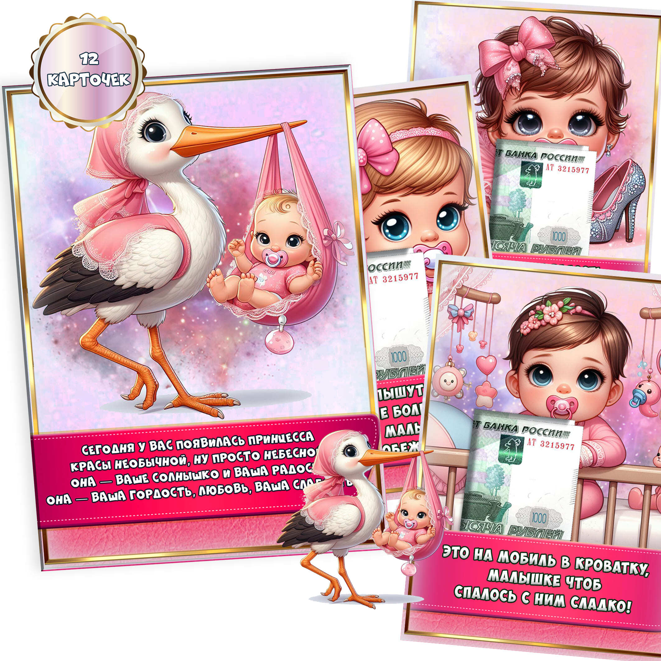 Состав набора: 12 карточек с прорезями для денег + коробочка для их хранения.
