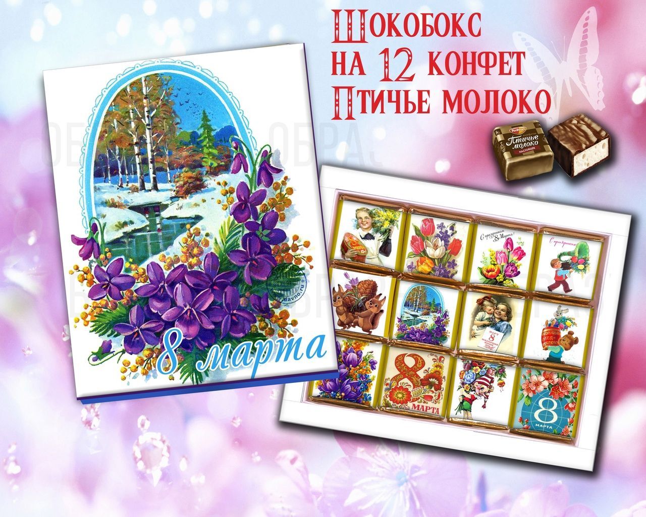 Подарочный набор конфет "8 марта" от известного производителя "Рот Фронт" представляет собой коробку с 12 конфетами, каждая из которых упакована в индивидуальную обертку.