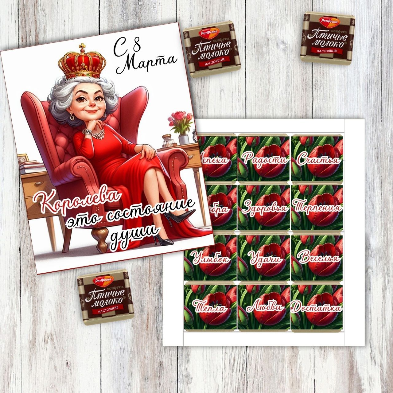 шокобокс; 8 марта; набор конфет; подарок; королева; птичье молоко