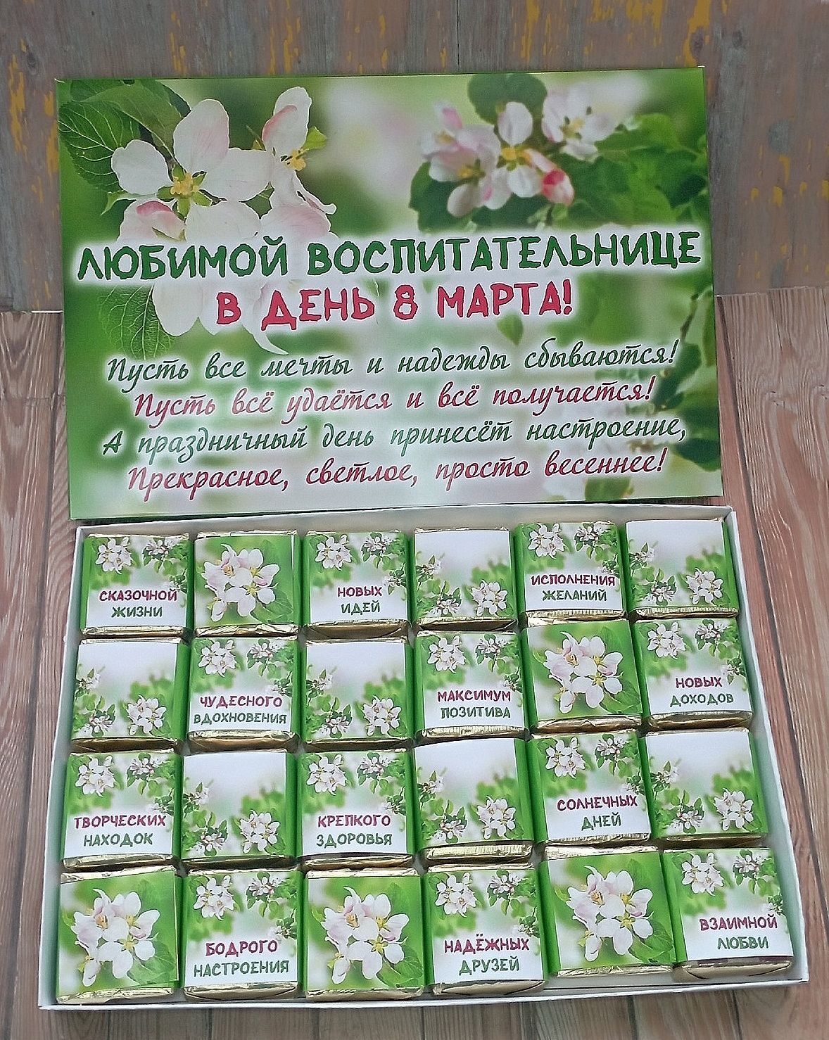 шокобокс;8 марта; набор конфет; подарок; воспитатель; птичье молоко