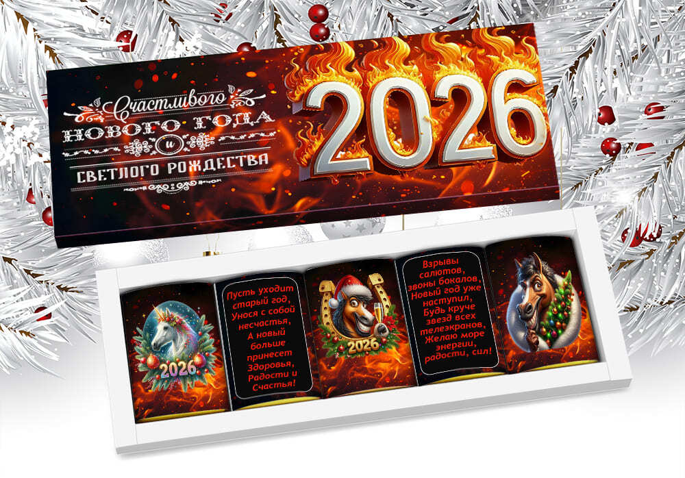 Подарочный набор "С новым годом" станет идеальным вариантом для поздравления родных и близких с наступающим праздником 2026 года. Этот уникальный набор включает в себя пять шоколадок. Каждая шоколадка обладает неповторимым вкусом и сделана из высококачественных ингредиентов, что делает их настоящим лакомством для гурманов.