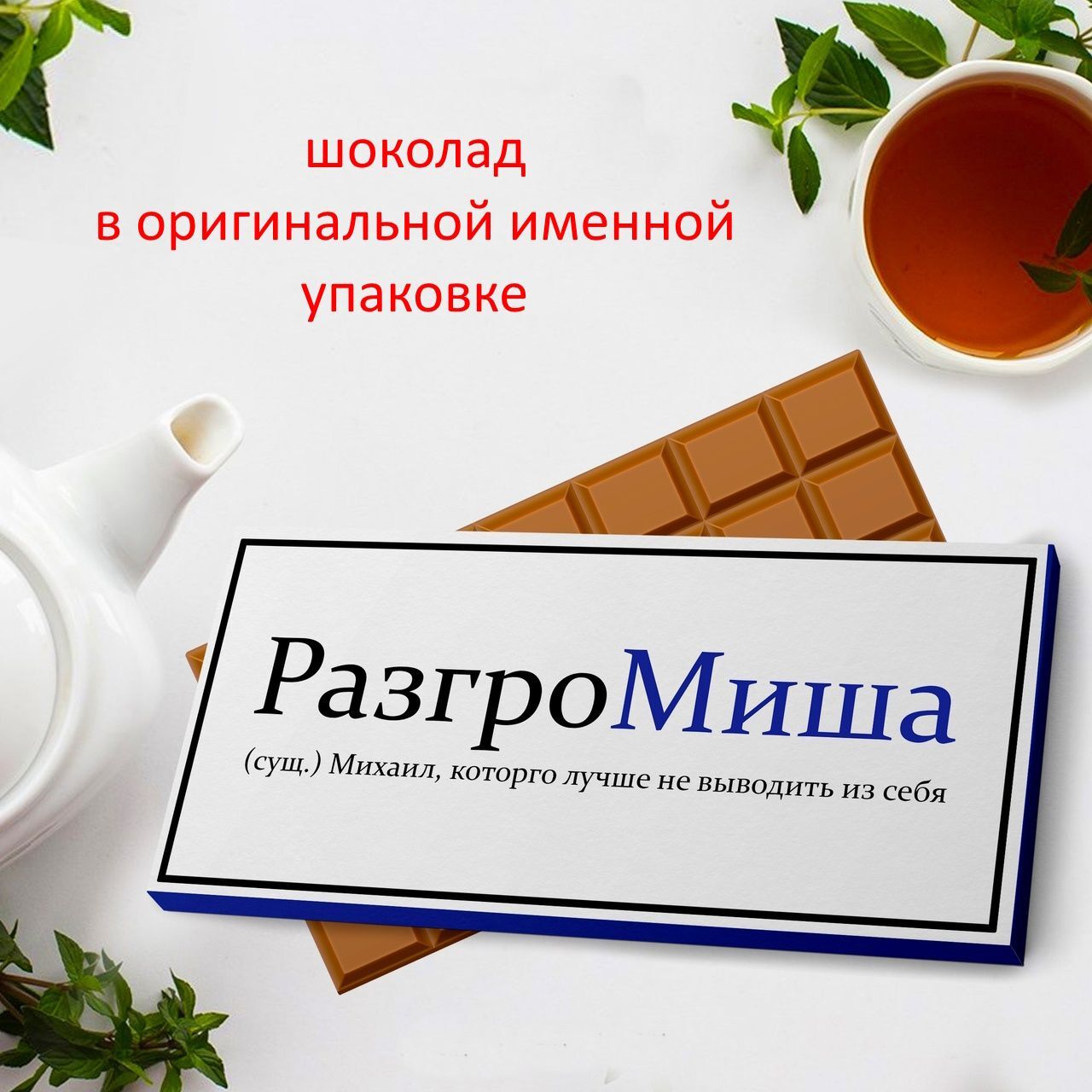 Подарочный шоколад Миша - это именной подарок, который станет лучшим и прикольным сувениром для вашего друга или близкого человека. Весом 90 грамм, этот шоколадный батончик упакован в привлекательную упаковку.