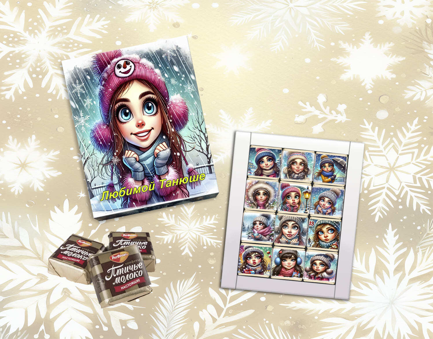 Шокобокс Самой красивой Татьяне - это отличный способ порадовать ваших близких в День Татьяны. Набор включает 12 изысканных конфет, среди которых вы найдете любимые сладости, такие как птичье молоко.