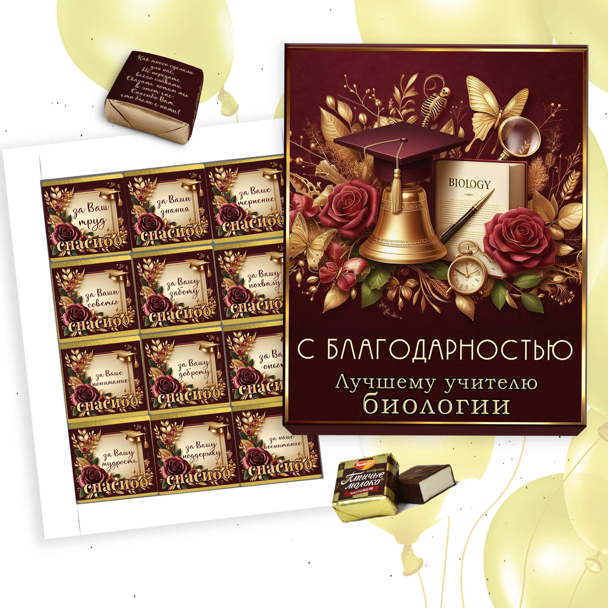 Шокобокс "С благодарностью учителю биологии" - это идеальный способ выразить свою признательность и уважение к любимому педагогу. Этот оригинальный подарок на выпускной включает в себя набор из 12 конфет, которые порадуют любого сладкоежку. В шокобоксе вы найдете изысканные конфеты, нежное "птичье молоко", которое подарит уникальное вкусовое наслаждение.