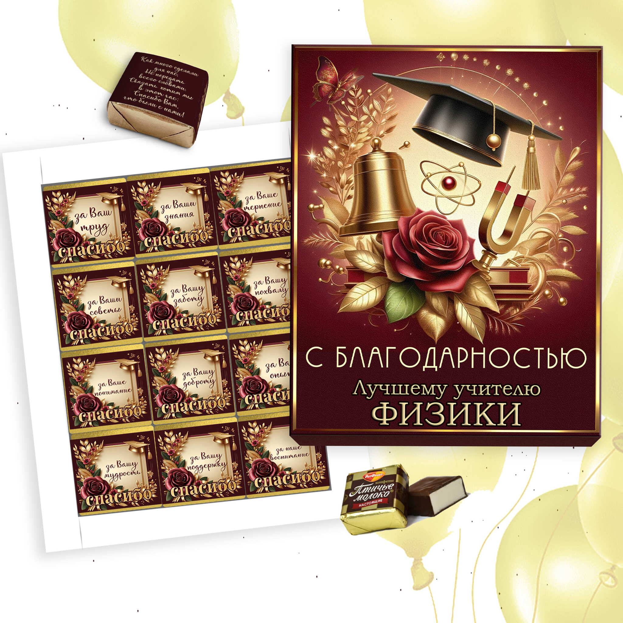 Создайте незабываемый момент для вашего учителя физики с этим стильным и вкусным шокобоксом. Он станет не только сладким угощением, но и памятным символом уважения и дружбы. Подарите эту коробку конфет, и вы сможете сделать день выпускника еще более особенным.