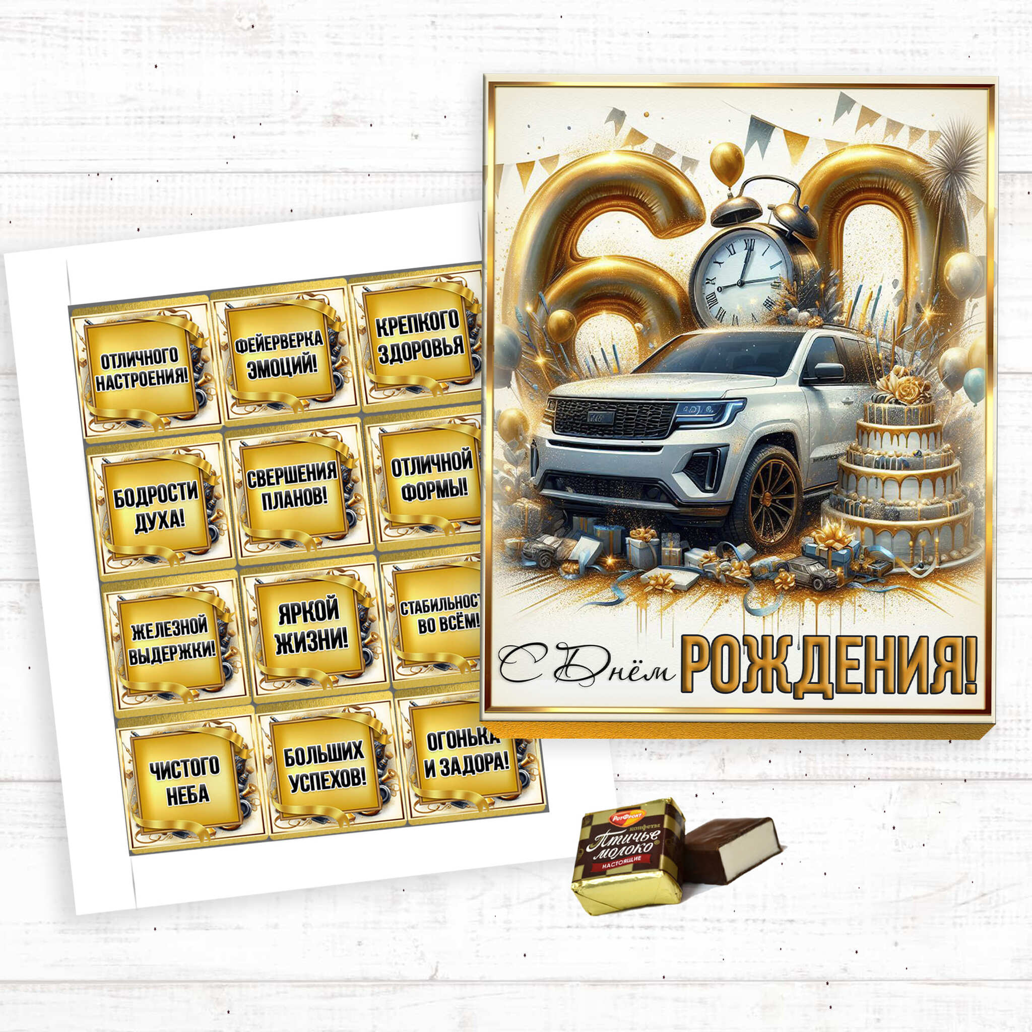 Шокобокс «С днем рождения, 60 лет» — это идеальный выбор для поздравления и подарка на день рождения. Набор включает 12 уникальных конфет, которые порадуют и удивят именинника. Эта сладкая композиция сочетает в себе разнообразные вкусы и текстуры, включая популярные конфеты с птичьим молоком. Каждый элемент установлен в красивую упаковку, усиливающую впечатление от подарка.