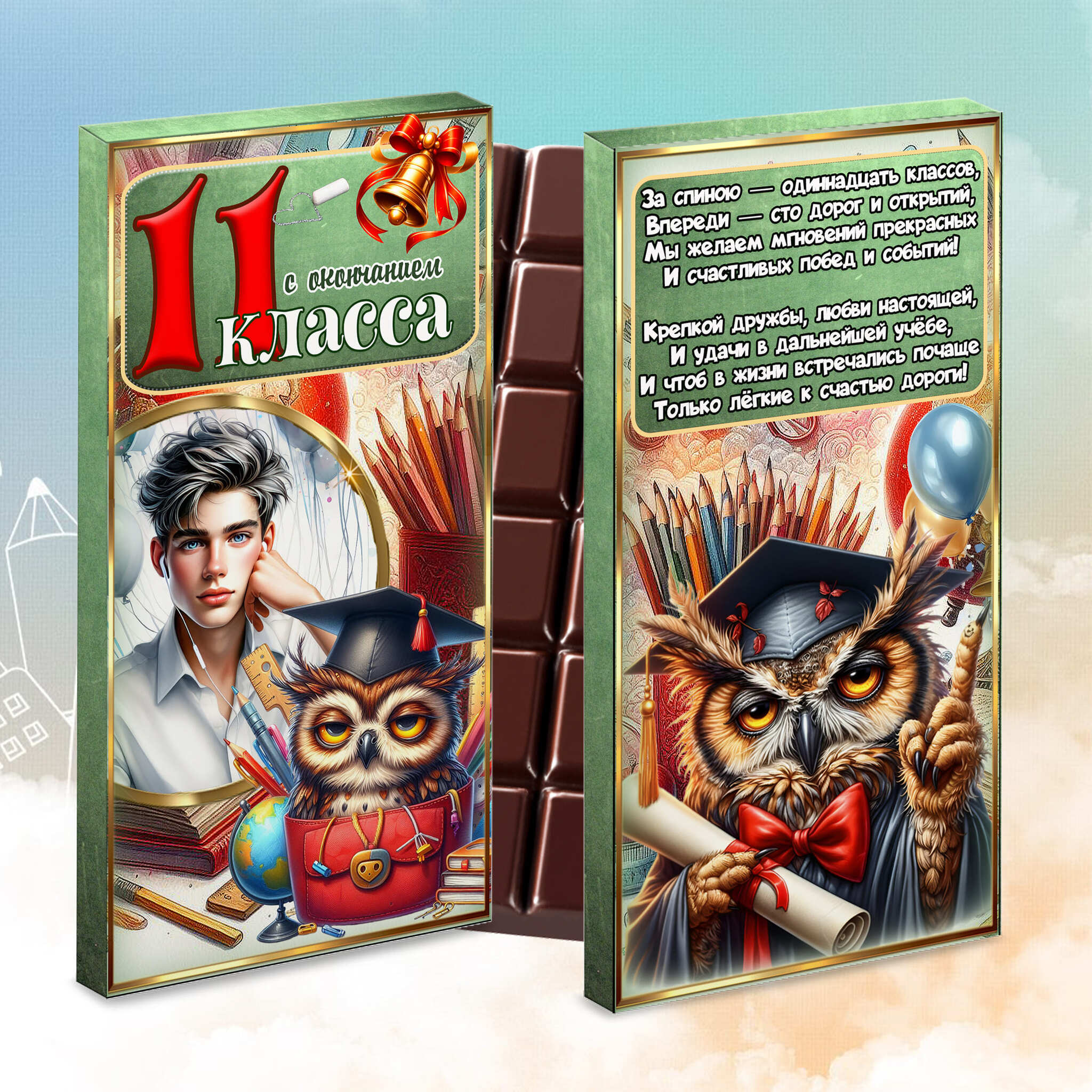 Шоколад в подарочной упаковке - идеальный способ поздравить выпускника с окончанием 11 класса. Этот роскошный шокобокс, наполненный нежным шоколадом, станет не только вкусным угощением, но и символом счастья и новых начинаний. Каждый кусочек этой сладости дарит радость и запоминается надолго. Упаковка оформлена с особым вниманием, что делает подарок еще более ценным и приятным.